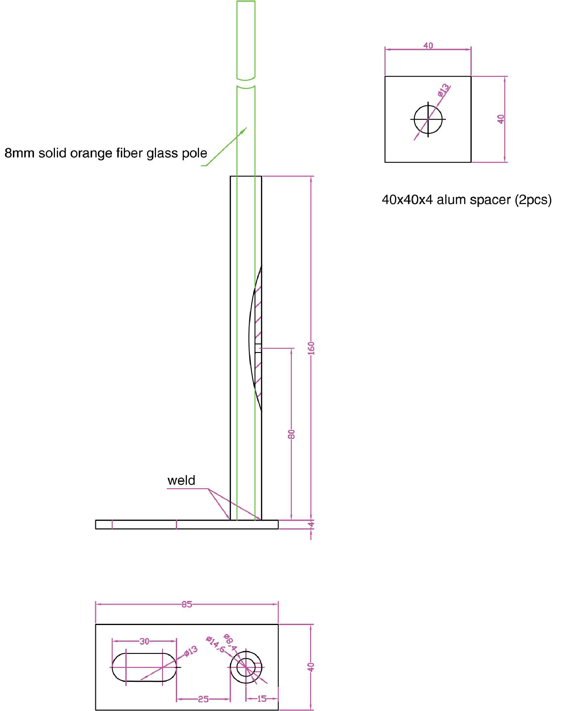- Highly visible 4’ fiberglass flexible pole