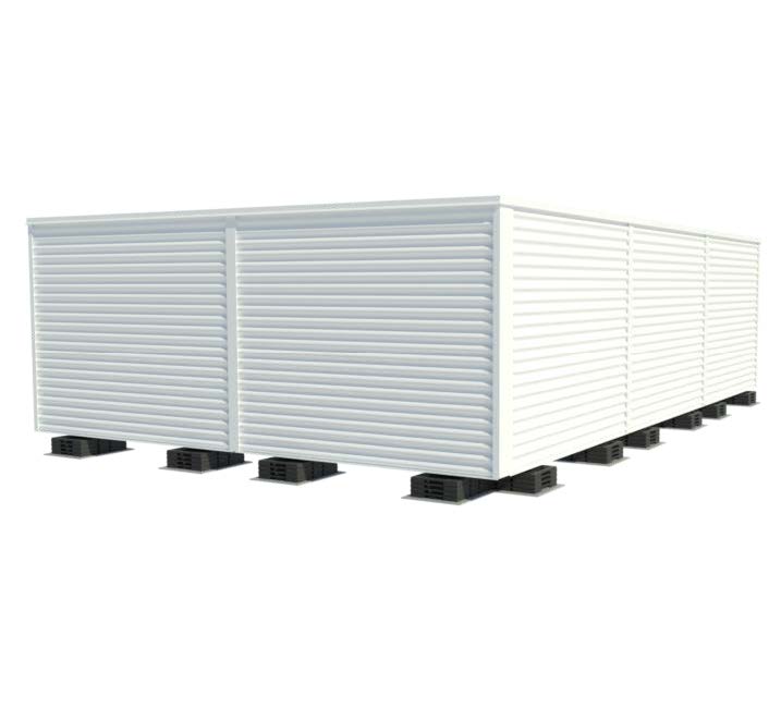 - Stackable bases : Ballast plates of 18.91 kg (41.7 lbs) each dimension 305 mm x 406 mm (12″ x 16″) made of cast iron according to ASTM A-48 class 30 including a 12 mm (1/2″) thick mat for the protection of the roofing system.