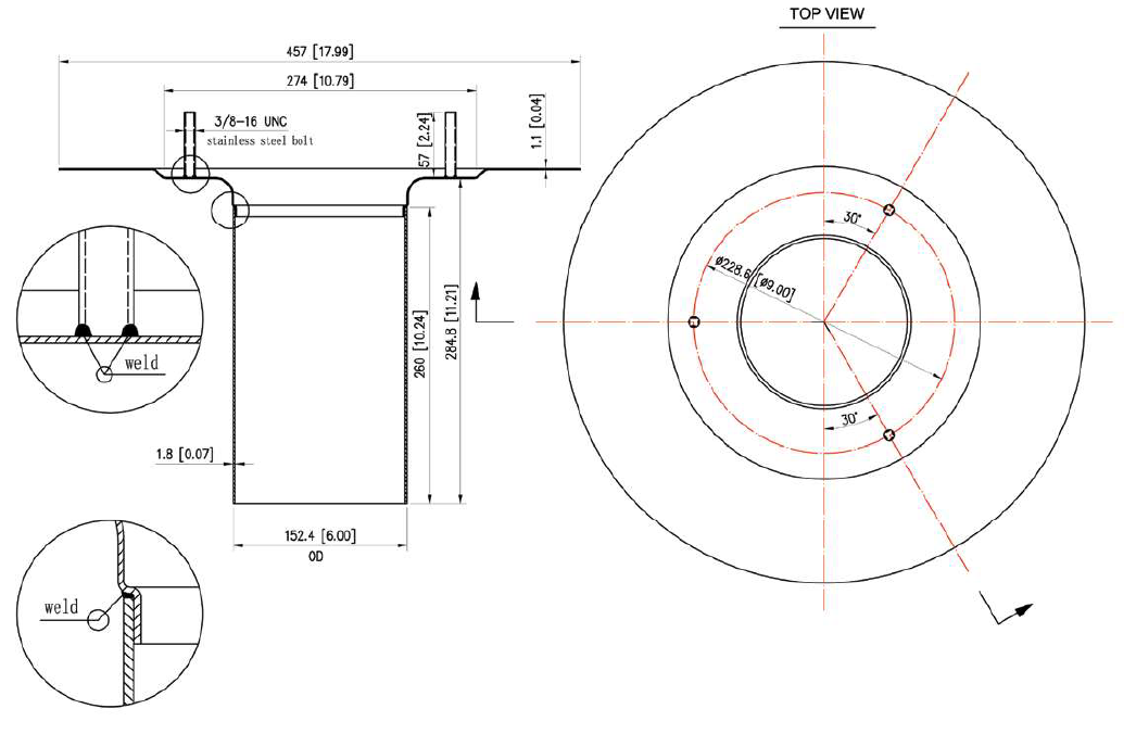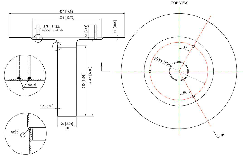- Tig welded 3/8” stainless steel bolts to copper deck