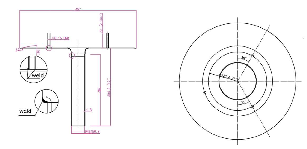 - Argon-Arc welded and overlapping seams for clean solid weld fusion